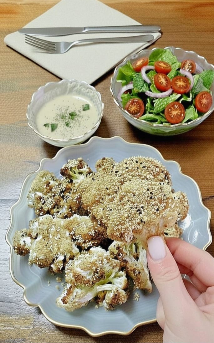 איך שהחורף מגיע והכרוביות מגיחות על מדפי בתי הטבע, אני לא יכולה להתאפק, בוחרת לי אחת לבנה ומוצקה שתהפוך לגרסה מנצחת וטעימה בטרוף של המתכון המוכר של הכרובית המטוגנת בפרורי לחם. אז היא לא מטוגנת, ואין בה פרורי לחם והיא לא פחות טעימה מאחותה הלא ממש בריאה. נסו, ותבינו:
