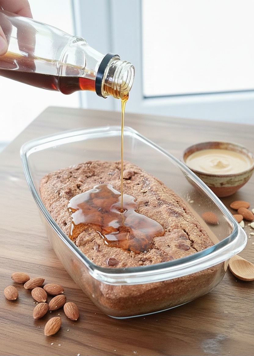 6. ברגע שמציאים את העוגה מזגגים עם סירופ מייפל טבעי- בכמות לפי טעמכם האישי.