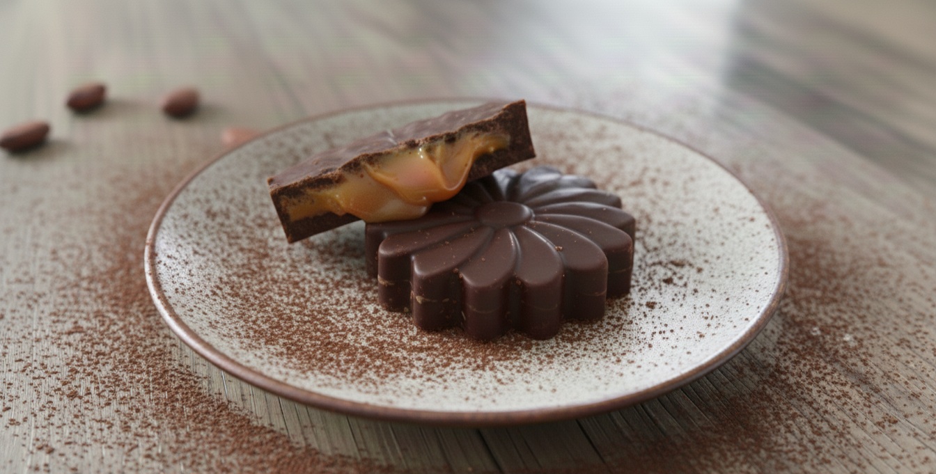 4. בשקעים של תבנית סיליקון* לשפוך חצי מקרם השוקולד ולהכניס למקפיא להתייצבות